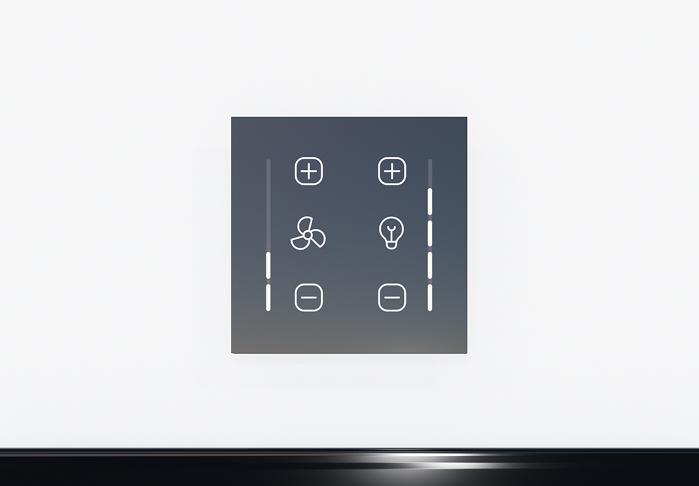 Réglez ventilation et éclairage du bout des doigts grâce à notre variateur tactile à LED intégré, discret et intuitif.