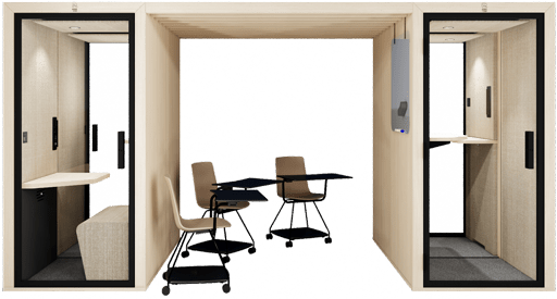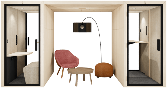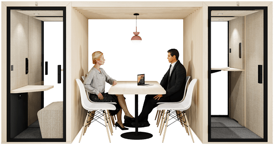 Pre-equipped to accommodate a screen, the pod becomes a connected space — ideal for remote meetings or presentations.