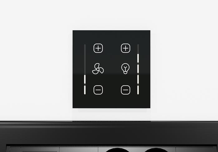Réglez ventilation et éclairage du bout des doigts grâce à notre variateur tactile à LED intégré, discret et intuitif.